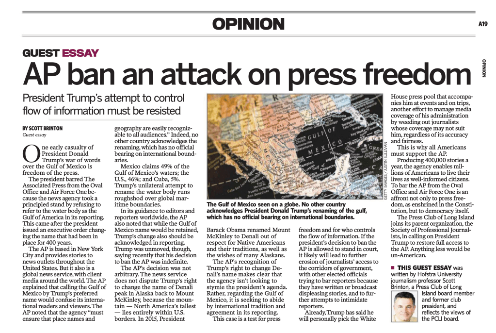 One early casualty of President Donald Trump’s war of words over the Gulf of Mexico is freedom of the press.
