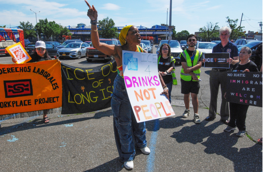 Kiana Bierria Anderson, 32, of Hempstead, an organizer with the Long Island Progressive Coalition, fired up the crowd at the NICE Bus terminal in Hempstead with a fiery speech in defense of immigrants. // All photos by Scott A. Brinton/Long Island AdvocateAn estimated 2,000 to 3,000 protesters turned out in Mineola in a downpour in June to decry Trump administration immigration policy, while addressing a host of other issues. // Photo by Scott A. Brinton/Long Island AdvocatePhotos by Scott A. Brinton/Long Island AdvocateChelsea Roocke, of Bellmore, was among the protesters in the crowd in Mineola. // Photo by Scott Brinton/Long Island Advocate