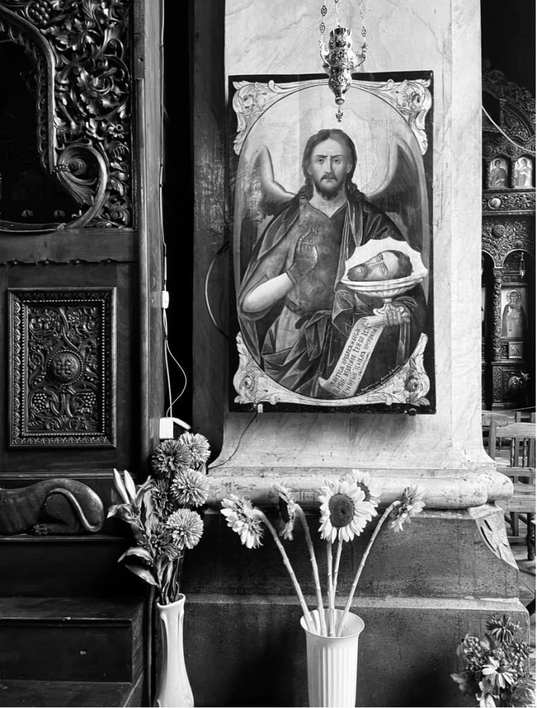 At left, the Sofia Mall, which opened in 2010, is one sign of Bulgaria’s pivot to the West. Malls such as this remain uncommon, though. At right, Iconography at St. Nikolai Sofiyski Church in the Vazrazhdane neighborhood of central Sofia.// Photos by Scott A. Brinton/Long Island Advocate